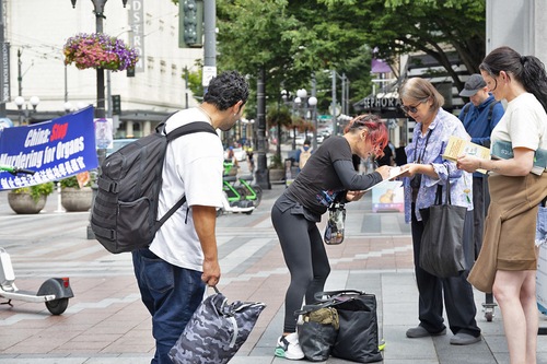 (Minghui.org) Практикующие Фалунь Дафа регулярно проводят мероприятия в центре Сиэтла (США), разоблачая преследование этой духовной практики компартией Китая (КПК). Они устанавливают плакаты, распространяют информационные букеты и собирают подписи под петициями с требованием прекратить преследование. Проявляя в течение многих лет упорство и доброту, они завоевали уважение и поддержку общественности.