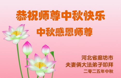 (Minghui.org) Несмотря на продолжающееся преследование Фалунь Дафа, люди в Китае по-прежнему продолжают заниматься этой практикой. Накануне праздника Середины осени 2025 года новые практикующие со всего Китая передают свои сердечные поздравления и наилучшие пожелания основателю Фалунь Дафа, Учителю Ли Хунчжи и благодарят за то, что Он передал миру эту практику и подарил людям надежду.