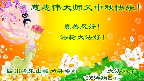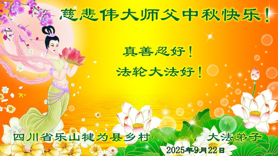 (Minghui.org) С приближением праздника Середины осени, который в 2025 году отмечается 6 октября, практикующие Фалунь Дафа присылают свои самые искренние поздравления Учителю Ли Хунчжи, основателю Фалунь Дафа, с пожеланием счастливого праздника.