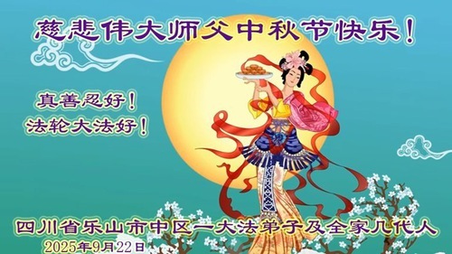 Практикующие Фалунь Дафа из провинции Сычуань желают уважаемому Учителю Ли Хунчжи счастливого праздника Середины осени (19 поздравлений)