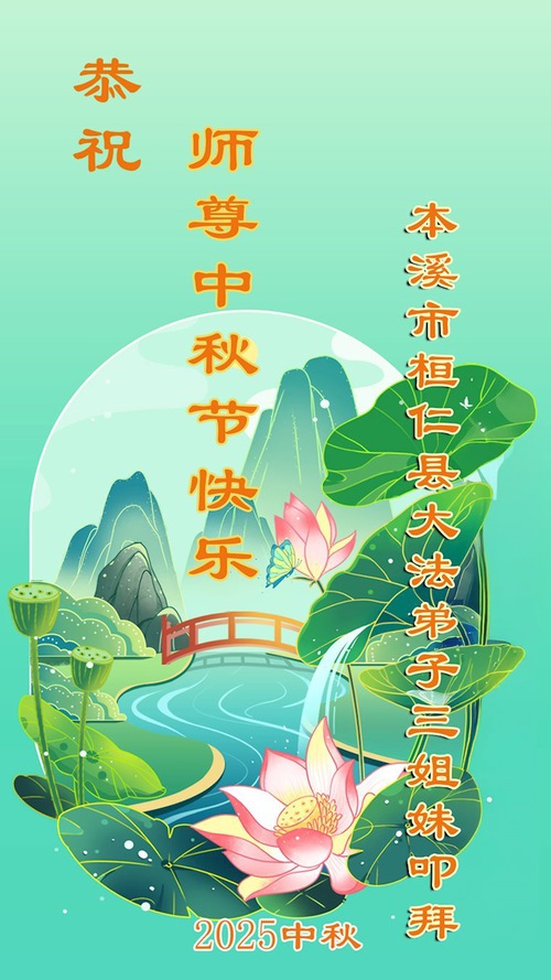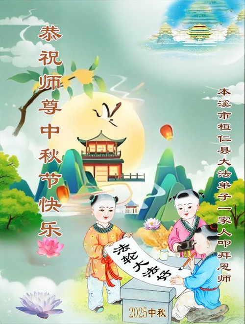 Практикующие Фалунь Дафа из города Бэньси желают уважаемому Учителю Ли Хунчжи счастливого праздника Середины осени (18 поздравлений)