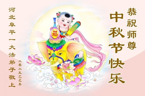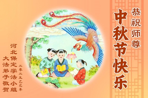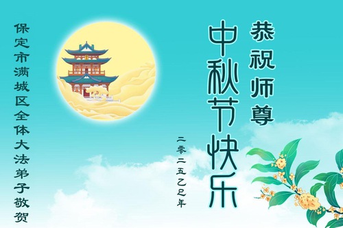 Практикующие Фалунь Дафа из города Баодин желают уважаемому Учителю Ли Хунчжи счастливого праздника Середины осени (19 поздравлений)