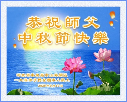 Практикующие Фалунь Дафа из города Циньхуандао желают уважаемому Учителю Ли Хунчжи счастливого праздника Середины осени (19 поздравлений)