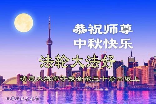 Практикующие Фалунь Дафа из провинции Ляонин желают уважаемому Учителю Ли Хунчжи счастливого праздника Середины осени (18 поздравлений)