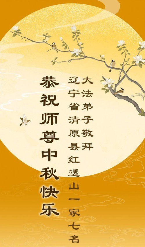 Практикующие Фалунь Дафа из провинции Ляонин желают уважаемому Учителю Ли Хунчжи счастливого праздника Середины осени (18 поздравлений)