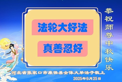 Практикующие Фалунь Дафа из города Чжанцзякоу желают уважаемому Учителю Ли Хунчжи счастливого праздника Середины осени (18 поздравлений)