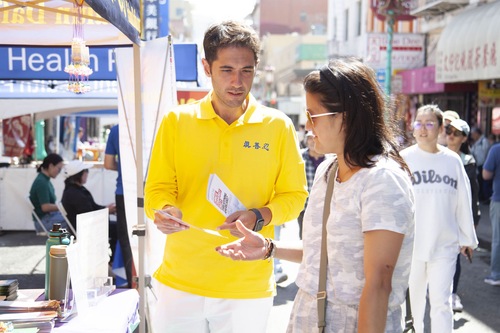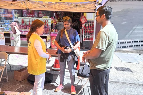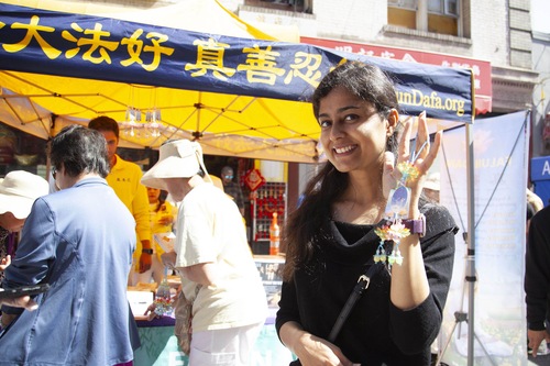 Анкита недавно переехала в Сан-Франциско. Она сказала, что в тот день просто хотела прогуляться и увидела палатку практикующих: «Сегодня замечательный день. Очень приятно изучать и практиковать Фалунь Дафа. Мне очень понравилось».