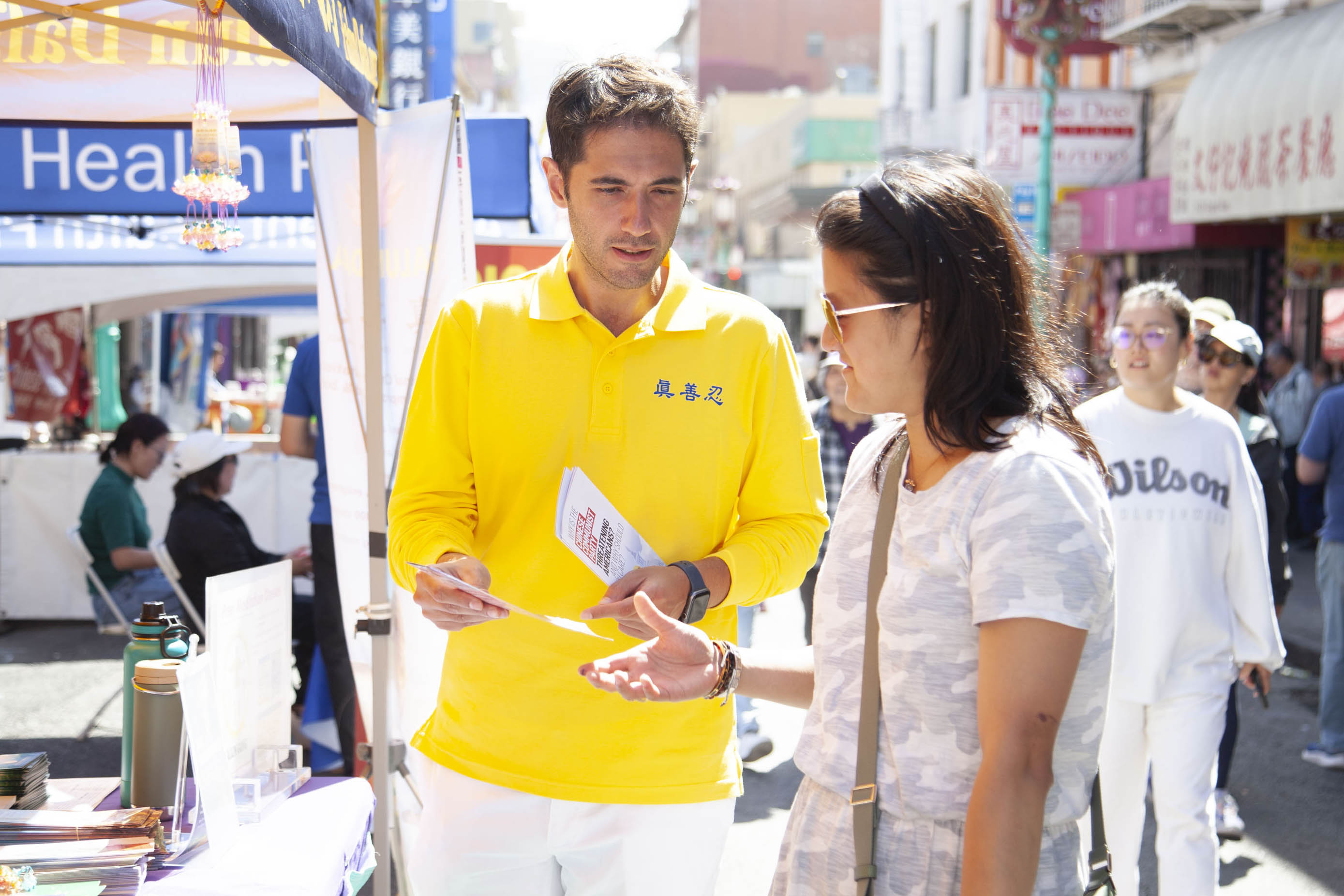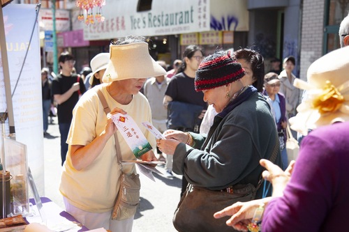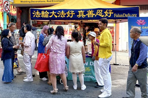 (Minghui.org) Практикующие Фалунь Дафа приняли участие в празднике Середины осени, который проходил 27-28 сентября 2025 года в китайском квартале Сан-Франциско. Они рассказывали о Фалунь Дафа (Фалуньгун) и информировали общественность о преследовании этой практики компартией Китая (КПК). Многие подписали петицию с призывом прекратить санкционированное государством насильственное извлечение органов в Китае. Несколько человек во время мероприятия научились выполнять упражнения Фалунь Дафа.