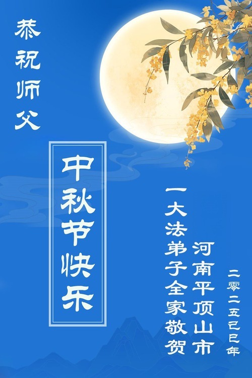 Практикующие Фалунь Дафа из провинции Хэнань желают уважаемому Учителю Ли Хунчжи счастливого праздника Середины осени (19 поздравлений)