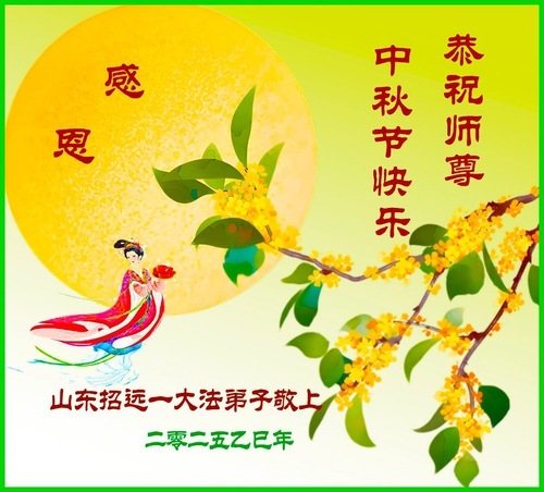 Практикующие Фалунь Дафа из провинции Шаньдун желают уважаемому Учителю Ли Хунчжи счастливого праздника Середины осени!