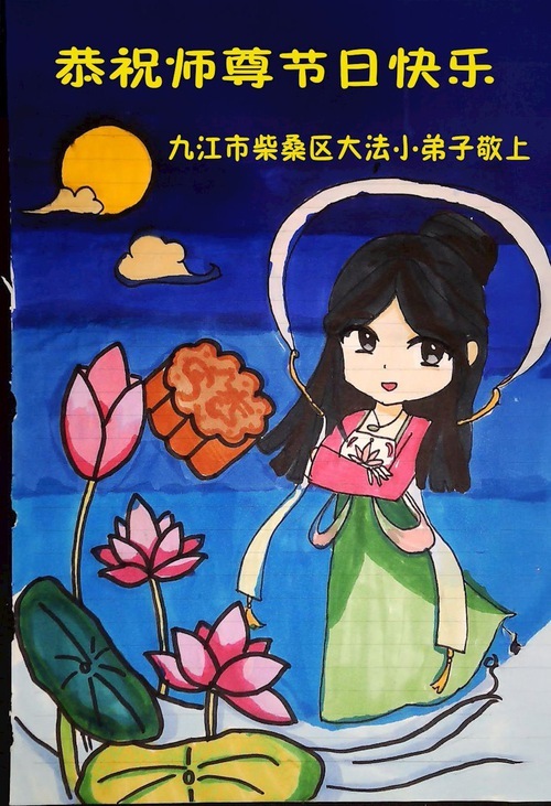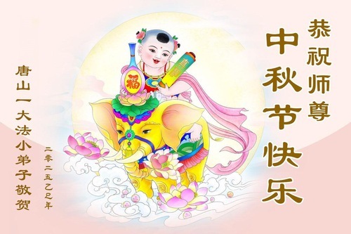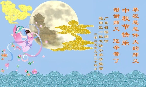 Юный практикующий Фалунь Дафа из района Футянь города Шэньчжэнь в провинции Гуандун написал: «Учитель, поздравляю Вас с праздником Середины осени! Спасибо за милосердное спасение и бесконечную милость Будды. Я буду стараться сохранять праведные мысли и совершать праведные поступки. Я буду более усердным!»