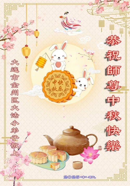 (Minghui.org) Наступил праздник Середины осени 2025 года, и многие юные практикующие Фалунь Дафа в Китае направляют свои сердечные поздравления Учителю Ли, основателю Фалунь Дафа. Они выражают свою благодарность милосердному Учителю Ли за спасение и полученные ими блага и обещают быть более усердными в совершенствовании.