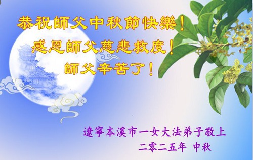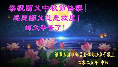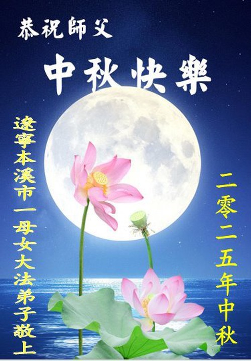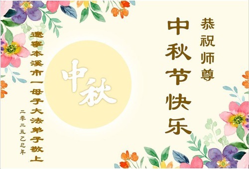 Практикующие Фалунь Дафа из города Бэньси желают уважаемому Учителю Ли Хунчжи счастливого праздника Середины осени (18 поздравлений)