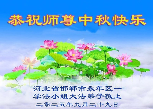 Практикующие Фалунь Дафа из провинции Хэбэй желают уважаемому Учителю Ли Хунчжи счастливого праздника Середины осени (22 поздравления)