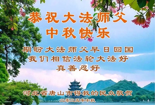 Практикующие Фалунь Дафа из города Таншаня желают уважаемому Учителю Ли Хунчжи счастливого праздника Середины осени (19 поздравлений)