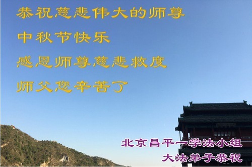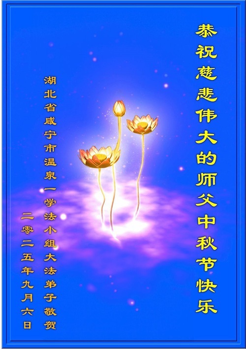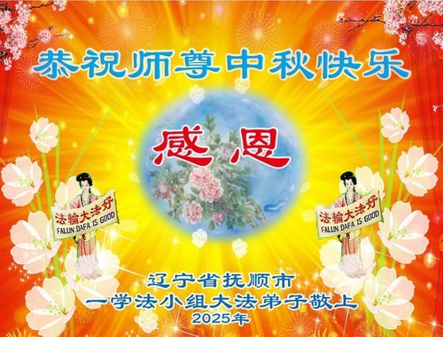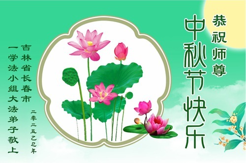 Практикующие из города Фушунь в провинции Ляонин напоминают друг другу: «Хотя, кажется, что бедствия продолжаются, давайте вспомним, почему мы начали практиковать Фалунь Дафа и для чего мы здесь. Пожалуйста, помните о нашем искреннем желании, пробудитесь и сделайте всё возможное, чтобы помочь Учителю спасти людей. Милосердный Учитель так много сделал для нас и для всех живых существ. Давайте будем поступать ещё лучше и выполним нашу доисторическую клятву о помощи Учителю в спасении жизней. Спасибо, Учитель Ли! Желаем Вам счастливого праздника Луны!»
