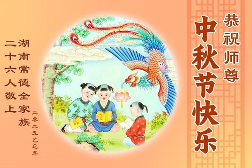 Практикующие Фалунь Дафа из провинции Хунань желают уважаемому Учителю Ли Хунчжи счастливого праздника Середины осени (20 поздравлений)