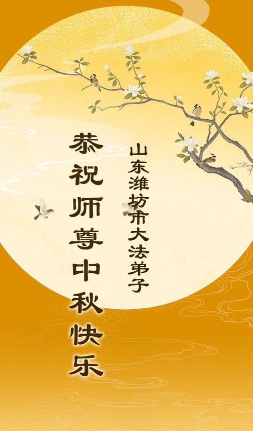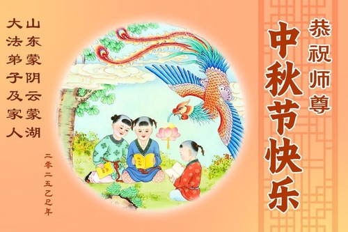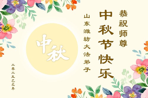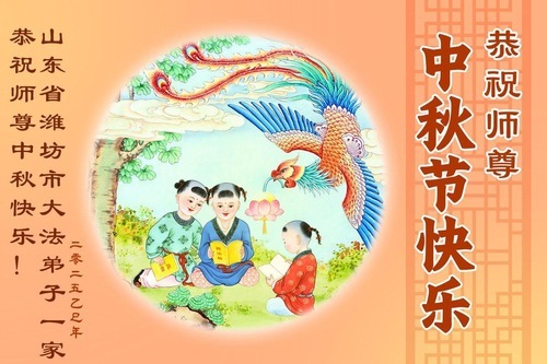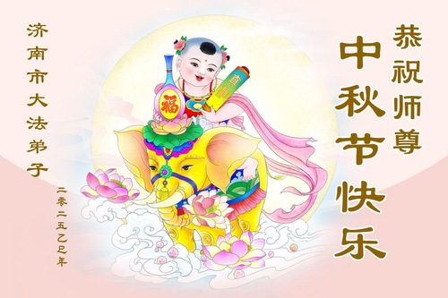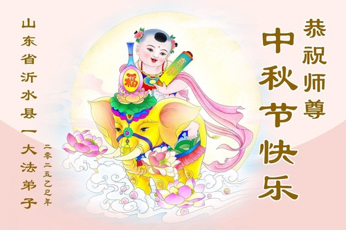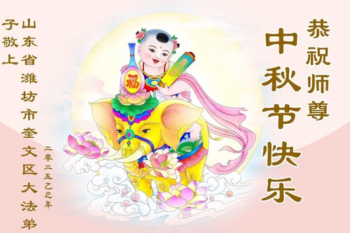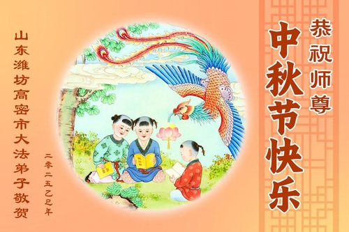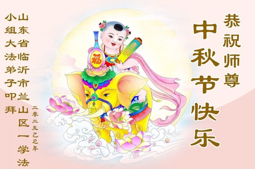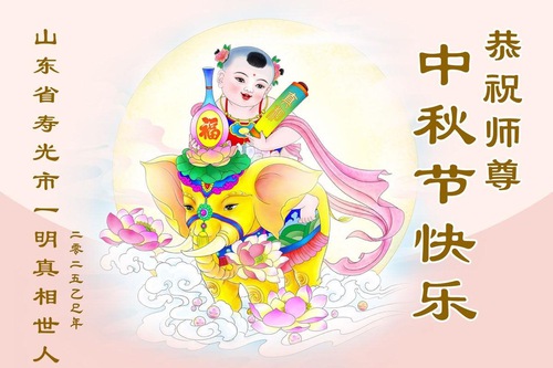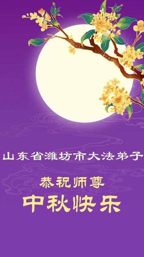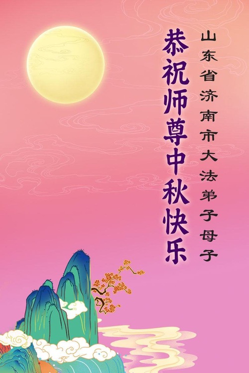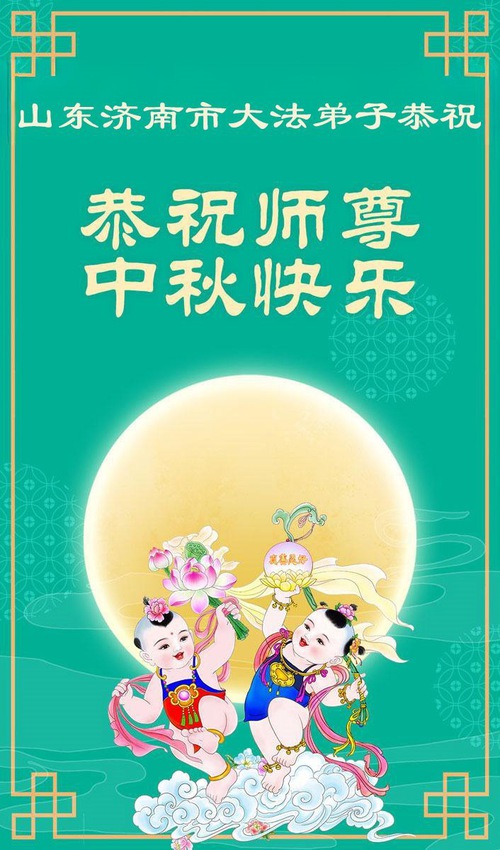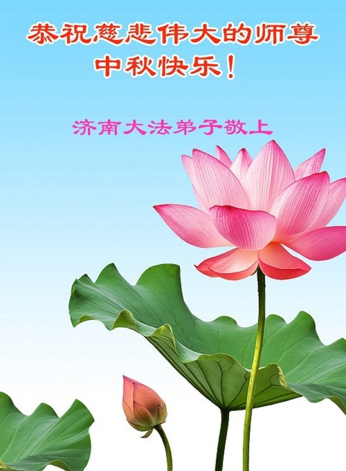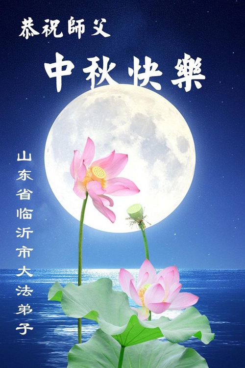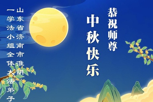 Практикующие Фалунь Дафа из городов Цзинань, Линьи и Вэйфан в провинции Шаньдун желают уважаемому Учителю Ли Хунчжи счастливого праздника Середины осени (128 поздравлений)