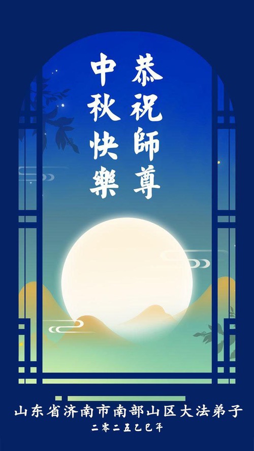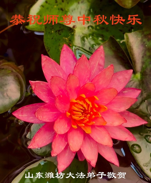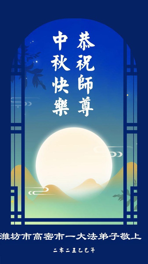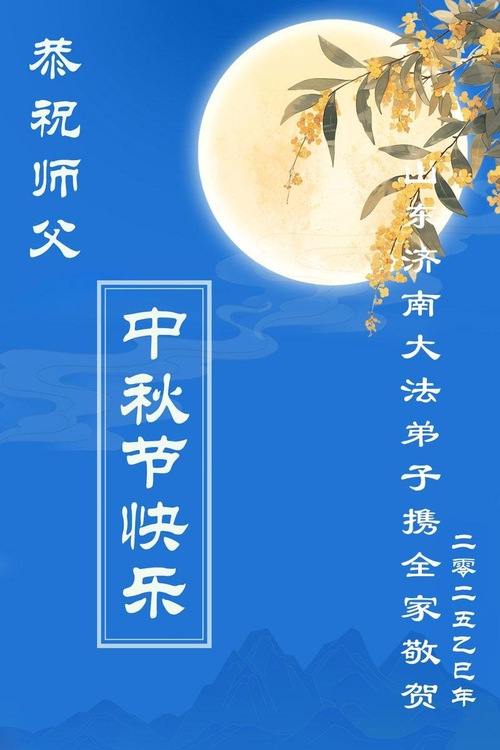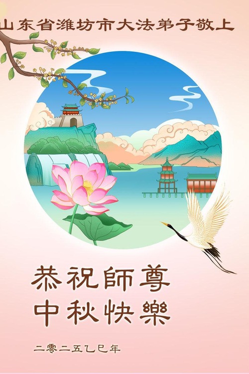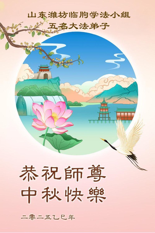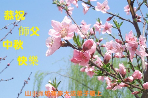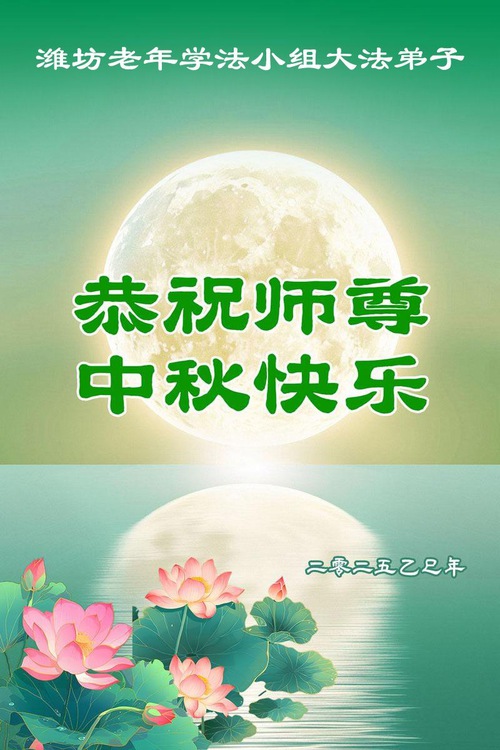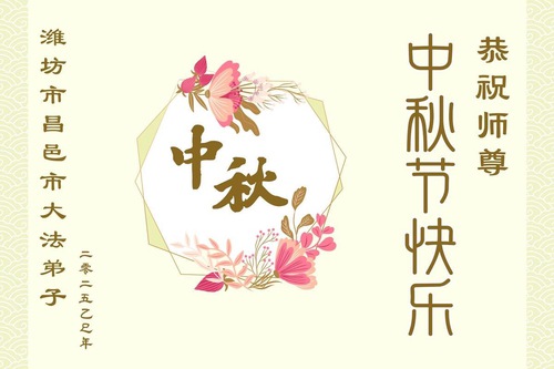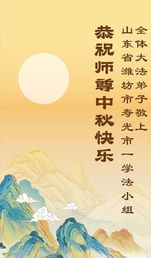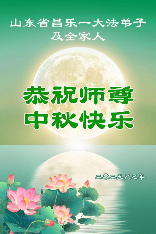 Практикующие Фалунь Дафа из городов Цзинань, Линьи и Вэйфан в провинции Шаньдун желают уважаемому Учителю Ли Хунчжи счастливого праздника Середины осени (128 поздравлений)
