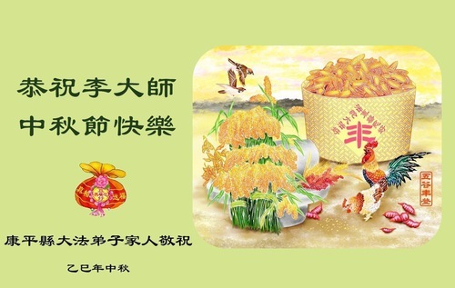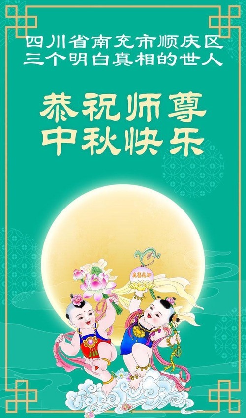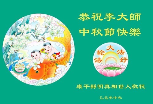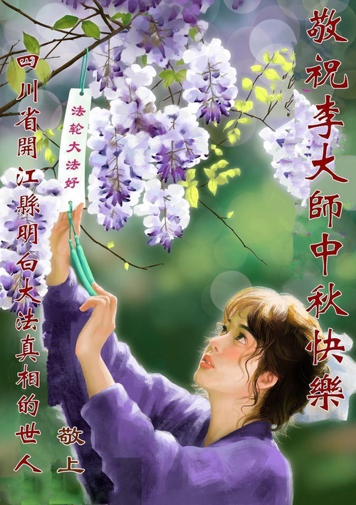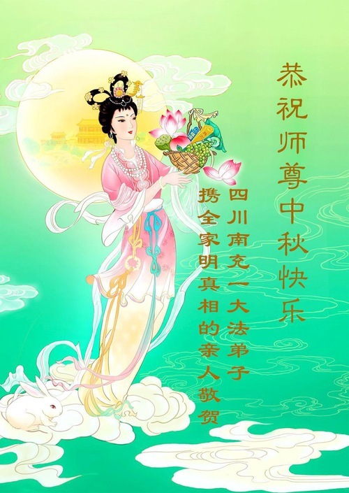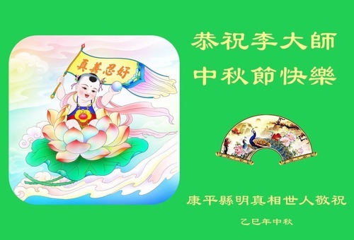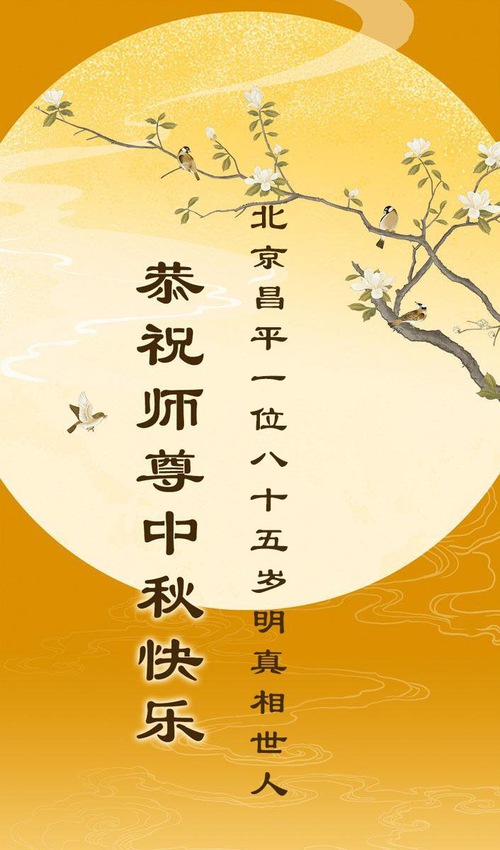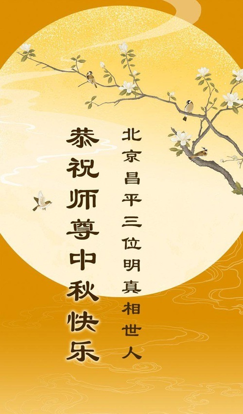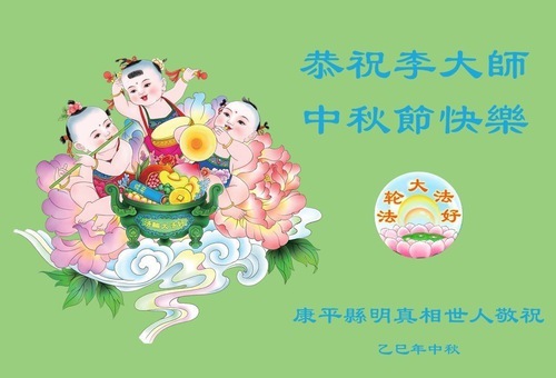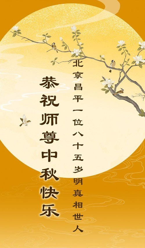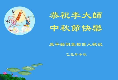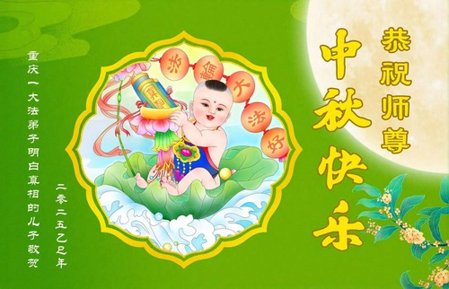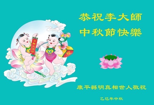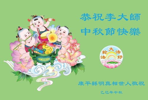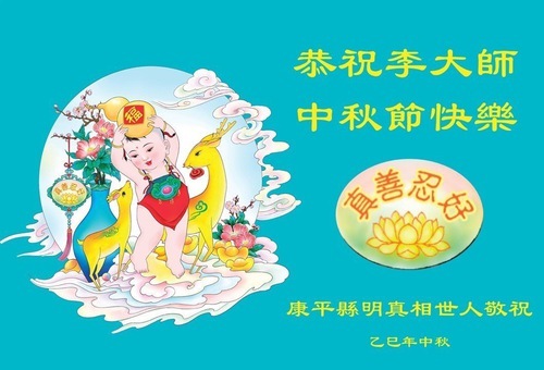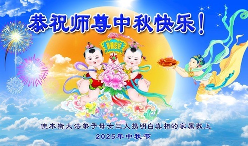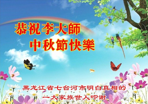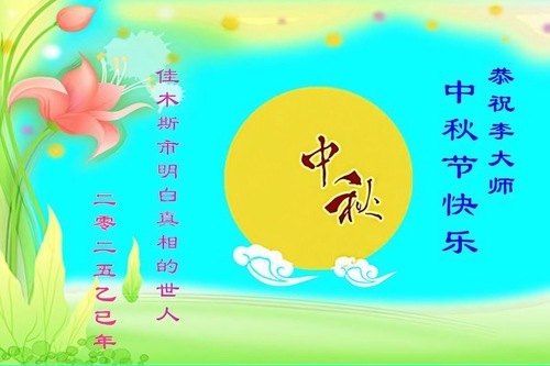 Некоторые жители города Цзямусы в провинции Хэйлунцзян написали: «Мы узнали о Дафа от одного из практикующих. В этот особый день, когда мы отмечаем праздник Середины осени, мы хотим пожелать Учителю Ли счастливого праздника!»