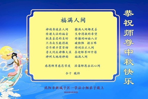 Практикующие Фалунь Дафа из провинции Ляонин желают уважаемому Учителю Ли Хунчжи счастливого праздника Середины осени (117 поздравлений)