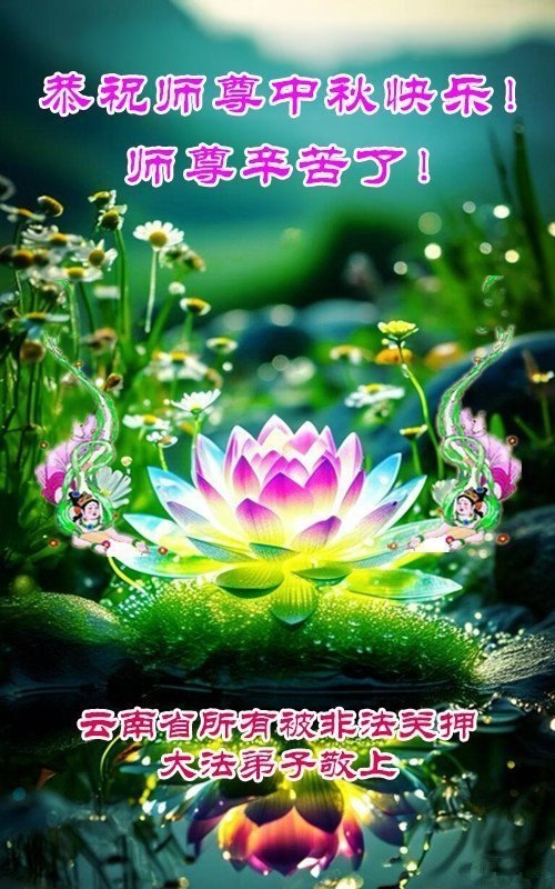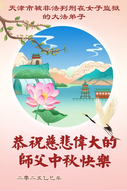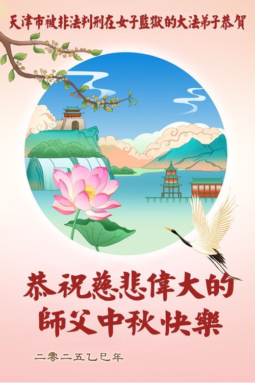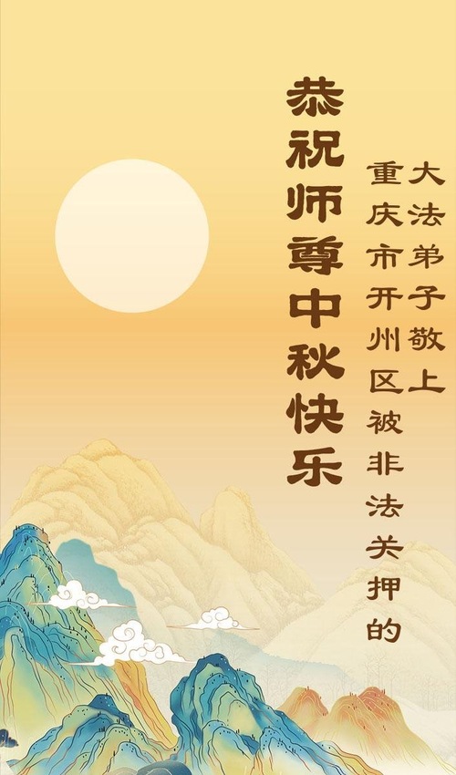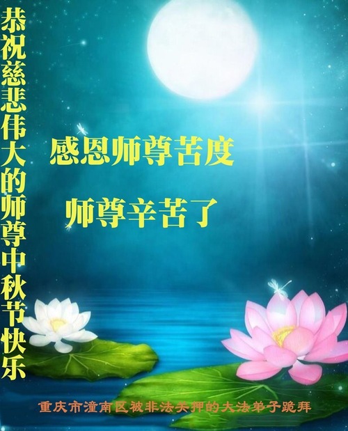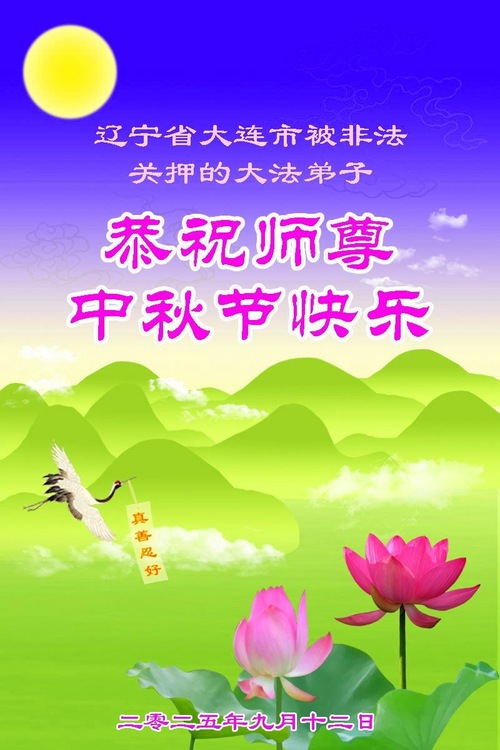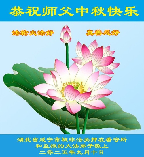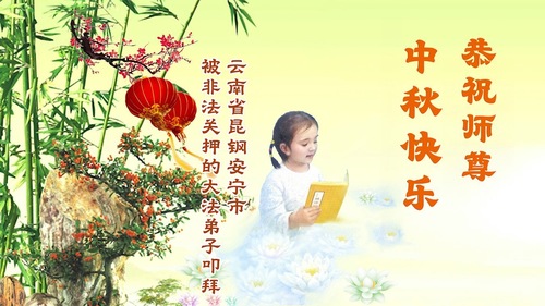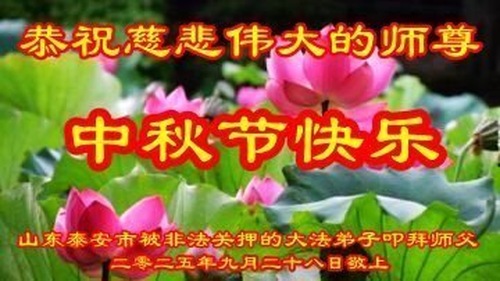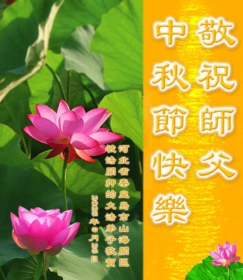 Несмотря на продолжающееся преследование и пытки в местах заключения, многие практикующие нашли возможность передать Учителю Ли свои наилучшие пожелания по случаю праздника Середины осени, который в этом году отмечается 6 октября. Они благодарят Учителя за то, что Он передал им принципы «Истина, Доброта, Терпение», которые как маяк освещают мрак тюремных застенков и помогают им пережить тяжёлые времена. Эти практикующие торжественно обещают оставаться непоколебимыми в своей вере и заявляют о решимости продолжать разъяснять правду о преследовании и всюду распространять добродетель Фалунь Дафа.