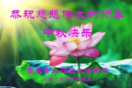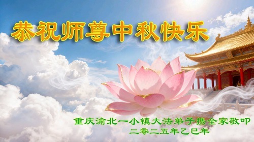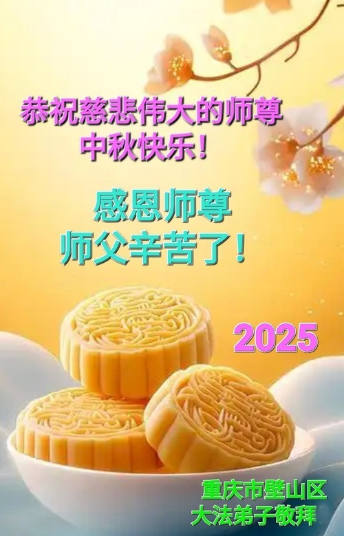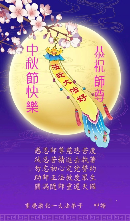 Практикующие Фалунь Дафа из восьми районов: Наньпин, Цзянбэй, Бэйбэй, Юйбэй, Цзяньцзинь, Банань, Цзюлунро, Фулин, а также округа Юньян и округа Фэнцзе желают уважаемому Учителю Ли Хунчжи счастливого праздника Середины осени!