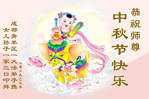 Практикующие Фалунь Дафа из городов Чунцин и Чэнду желают уважаемому Учителю Ли Хунчжи счастливого праздника Середины осени!
