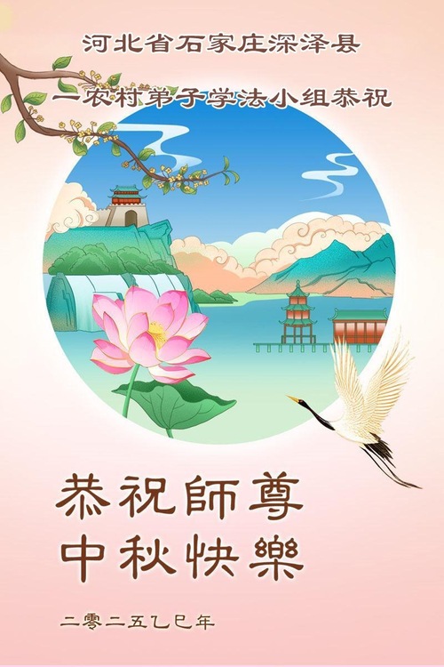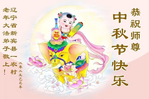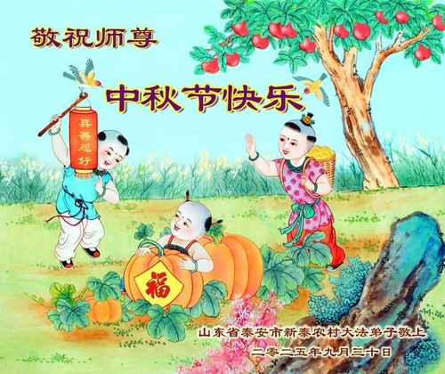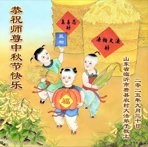 Практикующие Фалунь Дафа из сельской местности Китая поздравляют Учителя Ли Хунчжи с праздником Середины осени!