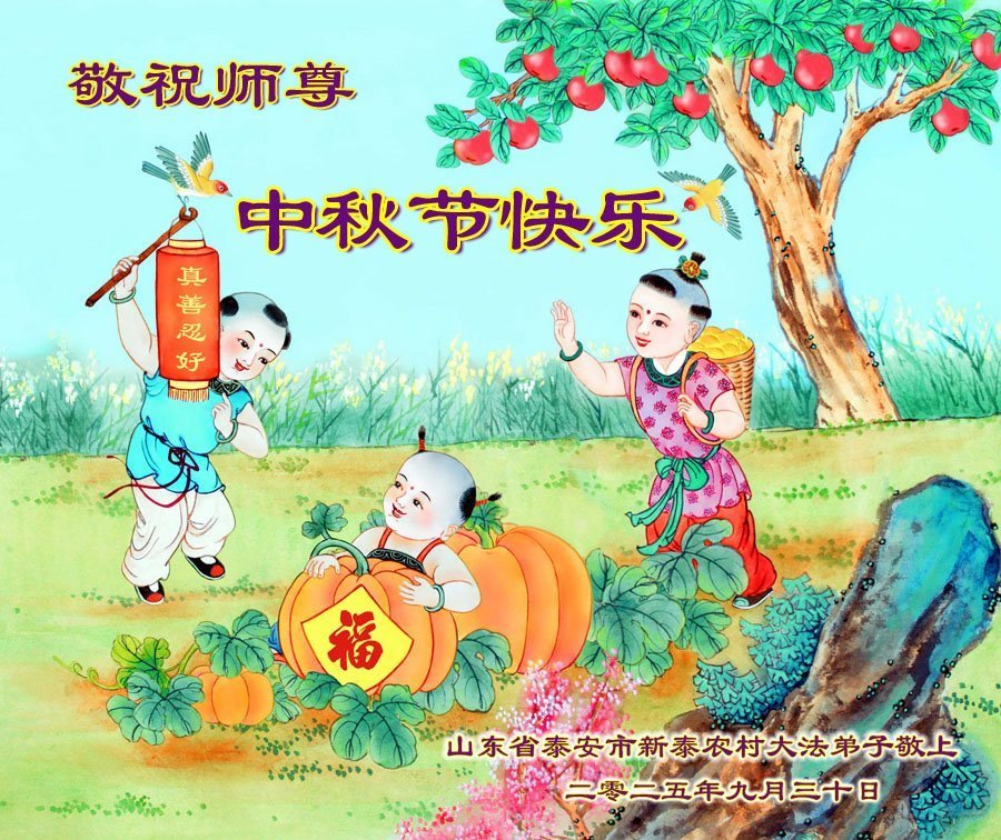(Minghui.org) К празднику Середины осени, который в 2025 году отмечается 6 октября, практикующие Фалунь Дафа прислали свои наилучшие пожелания Учителю Ли Хунчжи, основателю Фалунь Дафа.