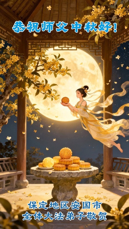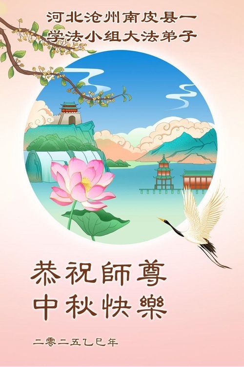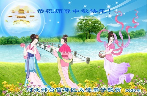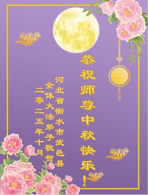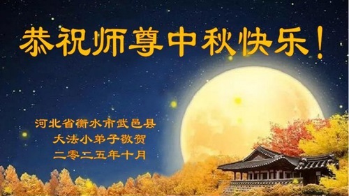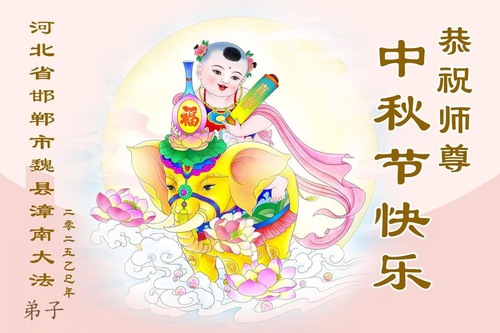 Практикующие Фалунь Дафа из городов/поселков/районов Ганчжоу, Ханьдан и Хэншуй в провинции Хэбэй поздравляют уважаемого Учителя Ли Хунчжи с праздником Середины осени!