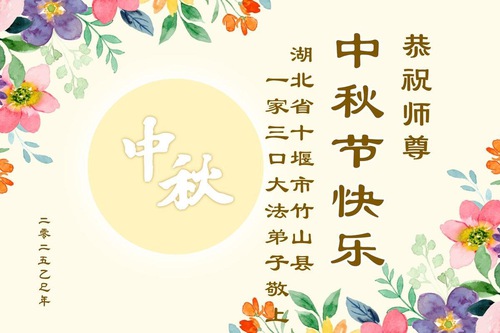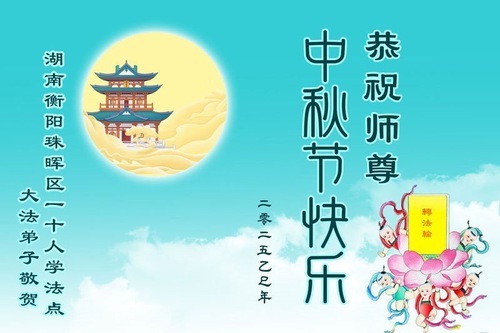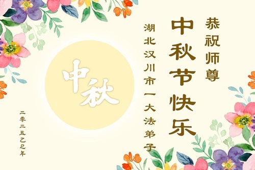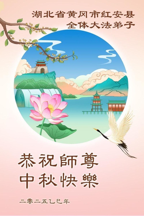 Практикующие Фалунь Дафа из городов/поселков/районов Шиян, Ухань, Хуанган, Ичан, Сяогань, Цзинчжоу, Тяньмэнь, Сяньян, Сяньтао в провинциях Хубэй и Хунань поздравляют уважаемого Учителя Ли Хунчжи с праздником Середины осени!