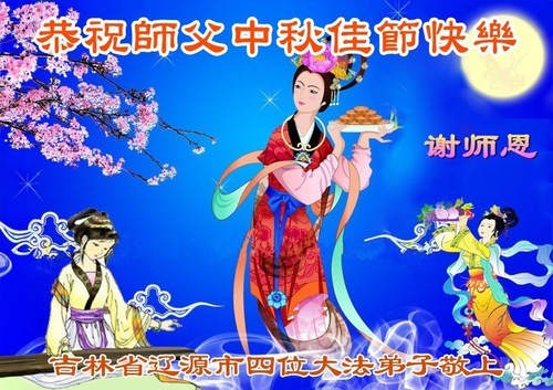 Практикующие Фалунь Дафа из городов/поселков/районов Байчэн, Янцзи, Сунюань, Ляоюань в провинции Цзилинь поздравляют уважаемого Учителя Ли Хунчжи с праздником Середины осени!