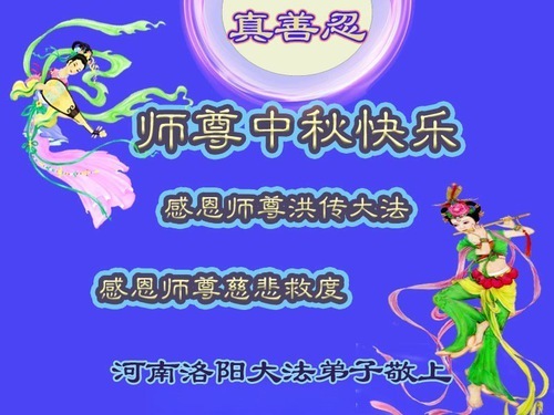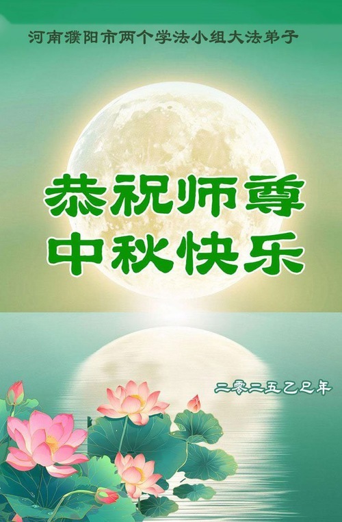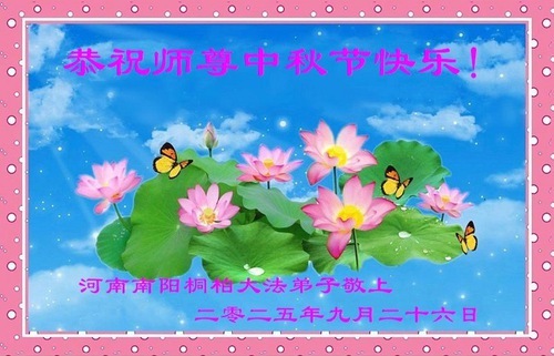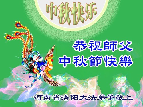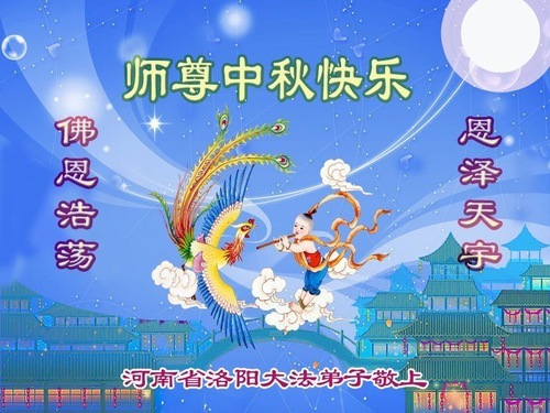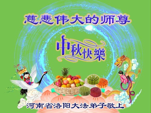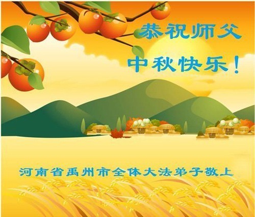 Практикующие Фалунь Дафа из городов/поселков/районов Чжоукоу, Сюйчан, Лоян, Лохэ, Пиндиншань, Шанцю, Наньян, Синьсян, Пуян в провинциях Хэнань и Гуандун поздравляют уважаемого Учителя Ли Хунчжи с праздником Середины осени!