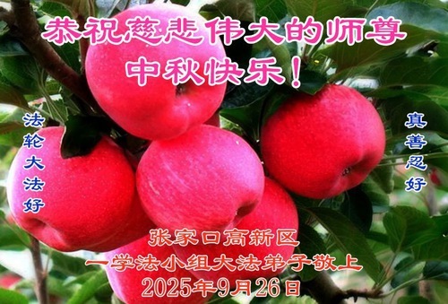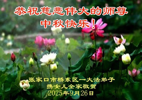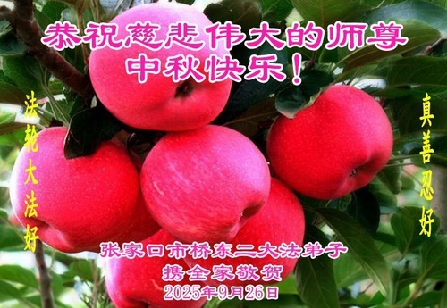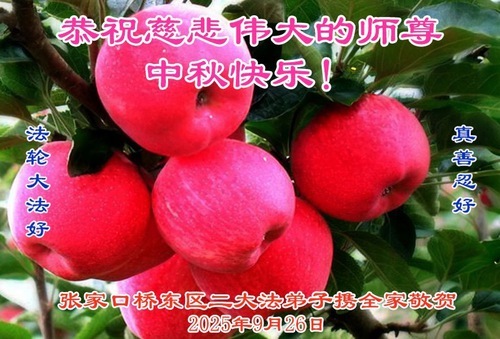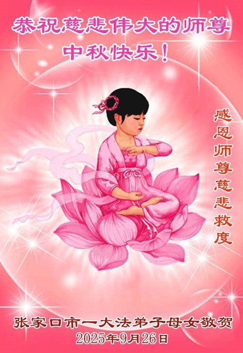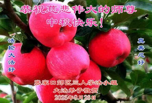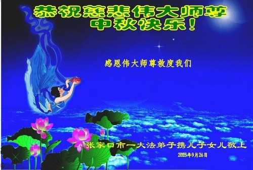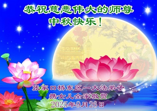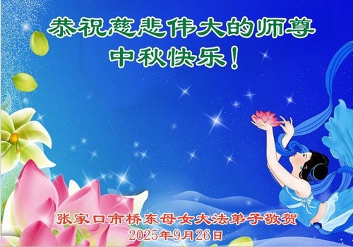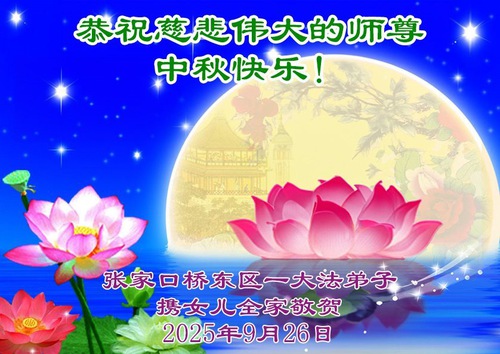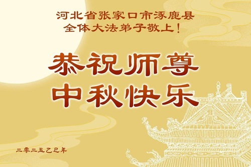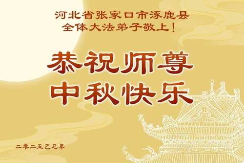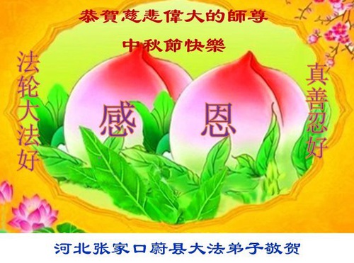 Практикующие Фалунь Дафа из города Чжанцзякоу желают уважаемому Учителю Ли Хунчжи счастливого праздника Середины осени (99 поздравлений)