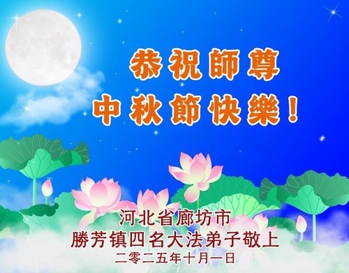 Практикующие Фалунь Дафа из городов Циньхуандао и Ланфана желают уважаемому Учителю Ли Хунчжи счастливого праздника Середины осени (97 поздравлений)