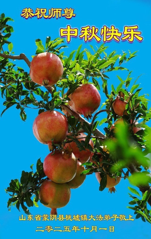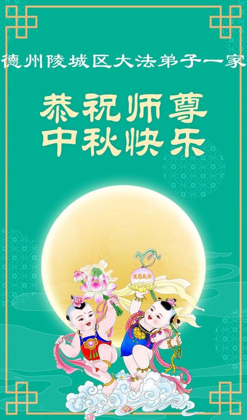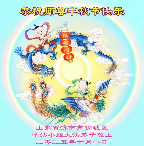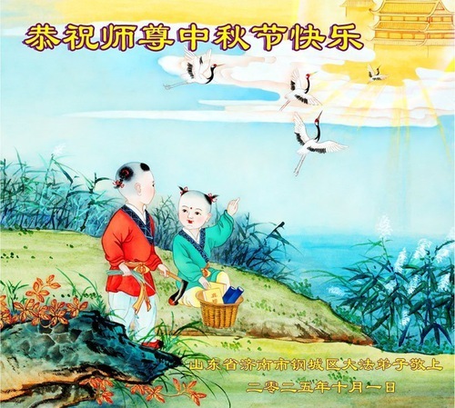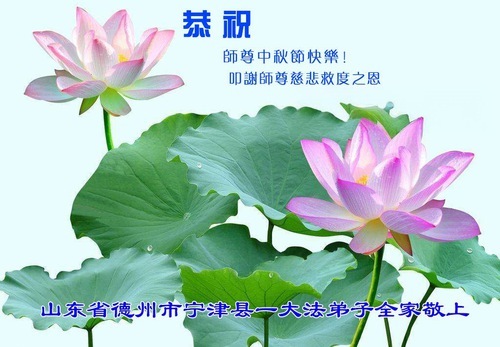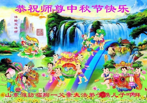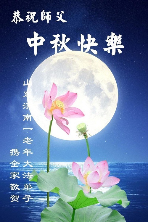 Практикующие Фалунь Дафа из городов Цзинаня, Дэчжоу, Вэйфана и Линьи желают уважаемому Учителю Ли Хунчжи счастливого праздника Середины осени (80 поздравлений)
