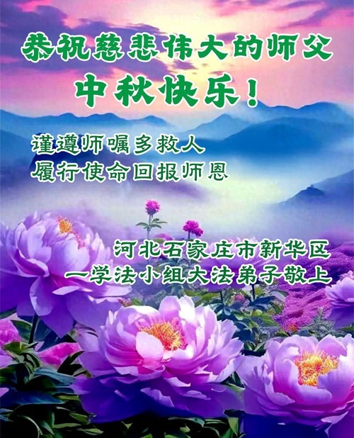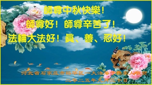 Практикующие Фалунь Дафа из города Шицзячжуана желают уважаемому Учителю Ли Хунчжи счастливого праздника Середины осени (108 поздравлений)