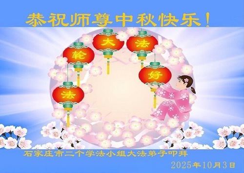 Практикующие Фалунь Дафа из города Шицзячжуана желают уважаемому Учителю счастливого праздника Середины осени!