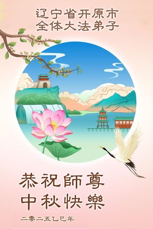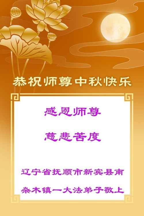 Практикующие Фалунь Дафа из провинции Ляонин желают уважаемому Учителю Ли Хунчжи счастливого праздника Середины осени (105 поздравлений)