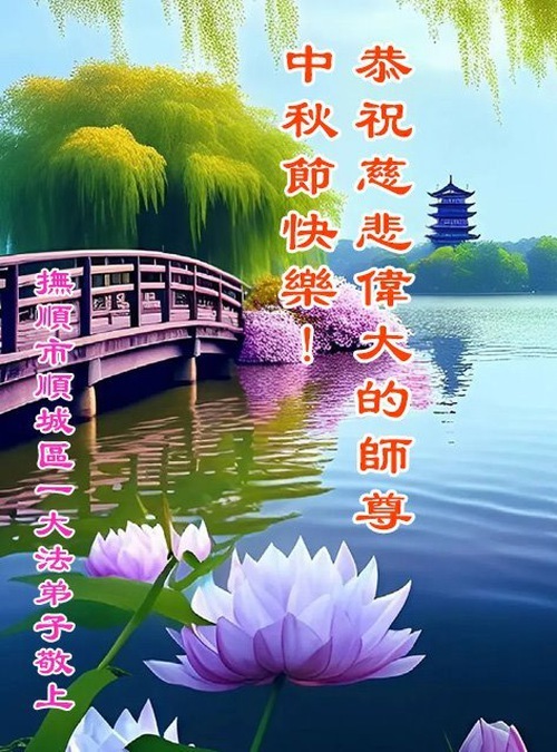 Практикующие Фалунь Дафа из городов, посёлков, районов Аньшаня, Фусиня, Ляояна и Фушуня желают уважаемому Учителю счастливого праздника Середины осени!