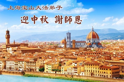 Практикующие Фалунь Дафа из Шанхая желают уважаемому Учителю Ли Хунчжи счастливого праздника Середины осени!