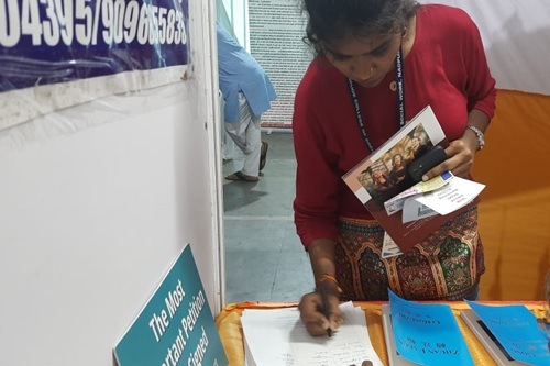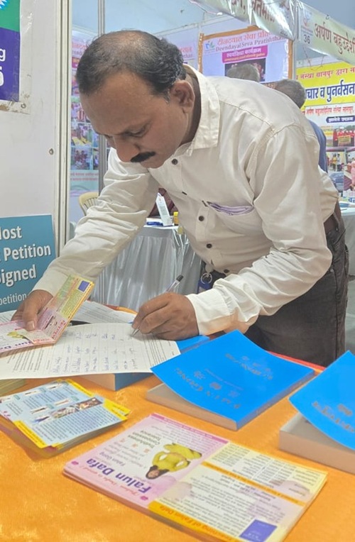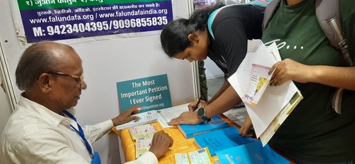 Врачи Равиндра Кольхе и Смита Кольхе – известные социальные работники, лауреаты государственной премии Падма Шри – несколько десятков лет проработали в отдалённых племенных районах. Они тоже подошли к стенду Фалунь Дафа. Их визит вдохновил практикующих и привлёк дополнительное внимание к мероприятию, побудив больше посетителей узнать о практике.