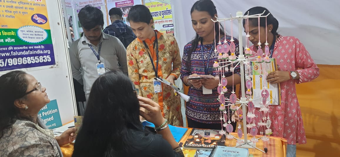 (Minghui.org) Практикующие Фалунь Дафа из Нагпура, Индия, приняли участие в выставке «Сельского развития и социальной службы» (Gramayan Abhyuday Sewa), которая проходила в зале «Тайя Хоуп Холл» с 12 по 14 сентября 2025 года, где они представили Фалунь Дафа. Они установили стенд, чтобы познакомить посетителей из разных слоёв общества с практикой и рассказать о продолжающемся преследовании в Китае.