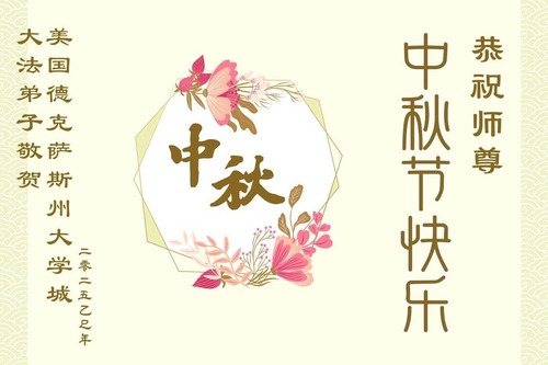 (Minghui.org) В этой подборке мы представляем поздравления, полученные от практикующих Фалунь Дафа из южных штатов США, которые желают Учителю Ли счастливого праздника Середины осени.