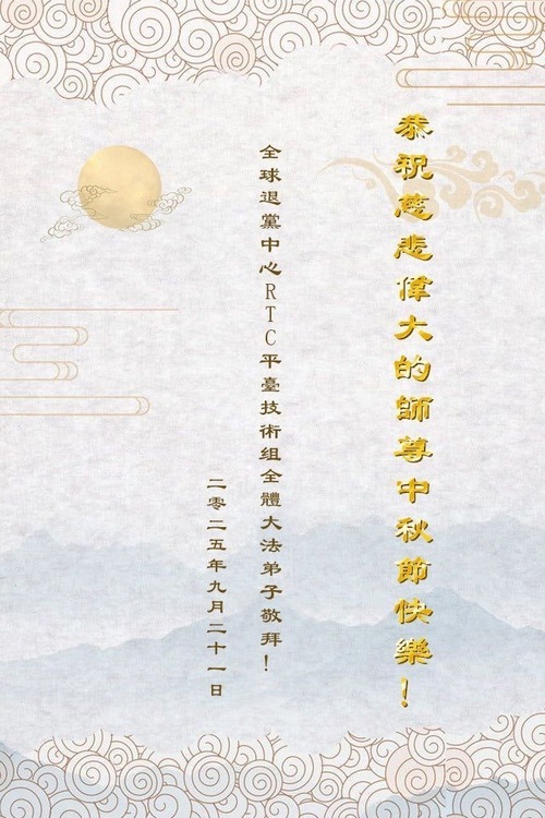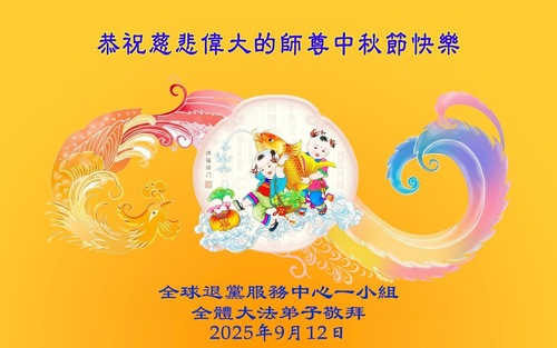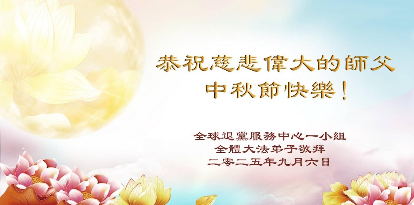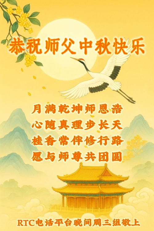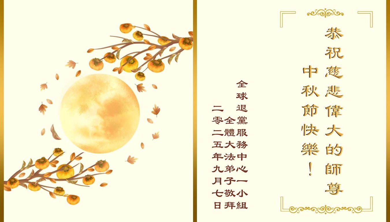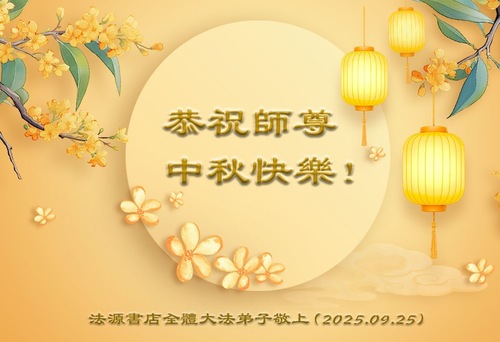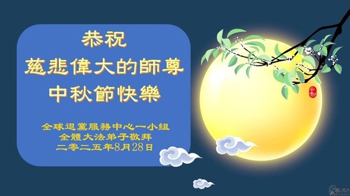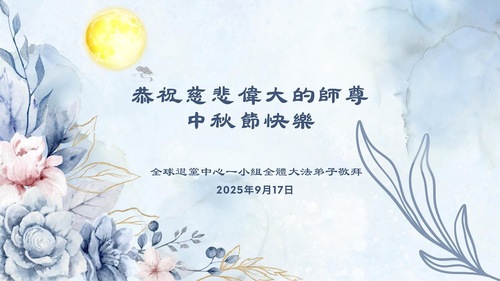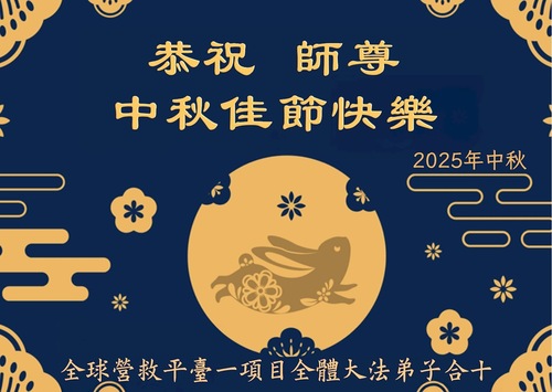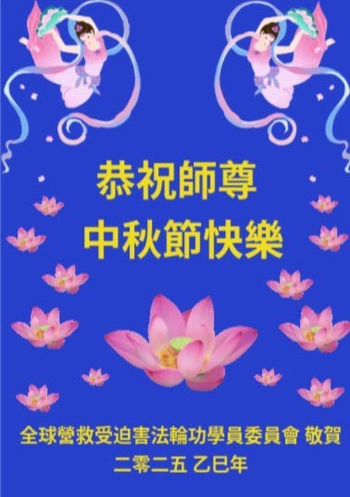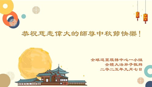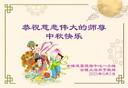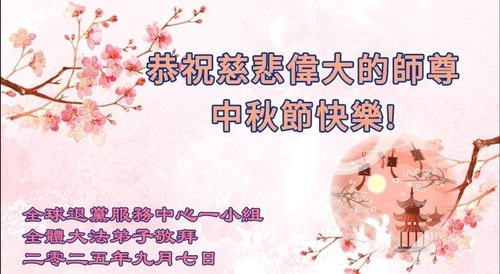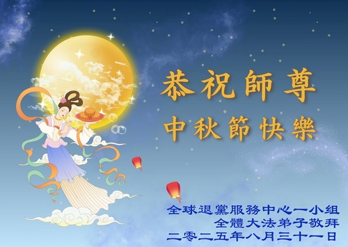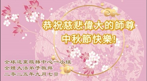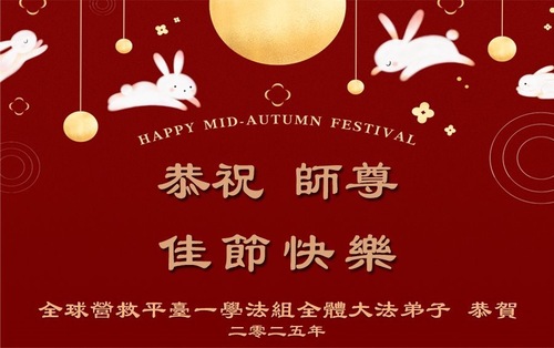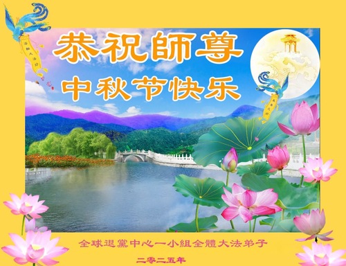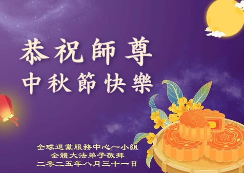 (Minghui.org) К празднику Середины осени 2025 года практикующие Фалунь Дафа присылают свои поздравления и наилучшие пожелания Учителю Ли Хунчжи, основателю Фалунь Дафа.