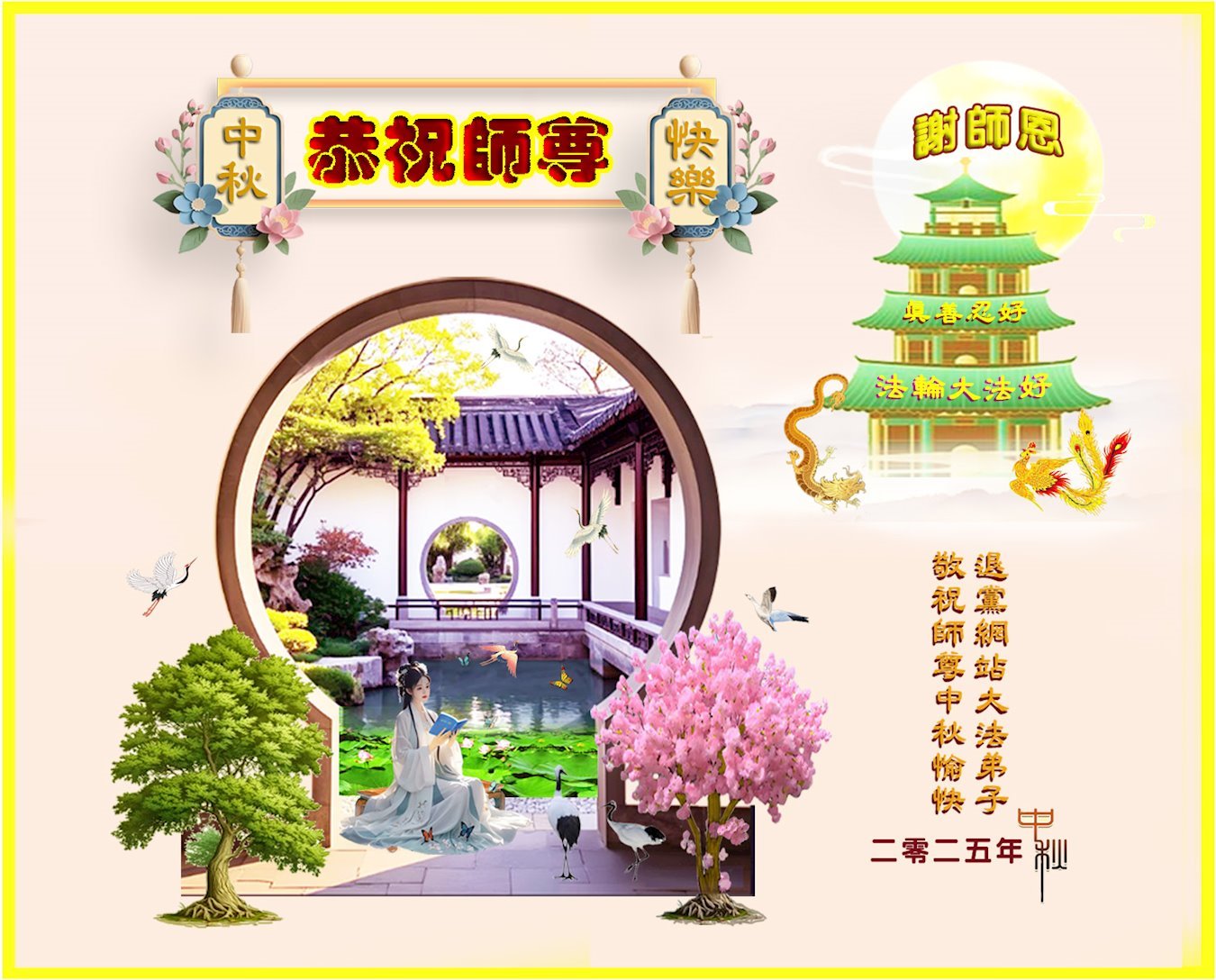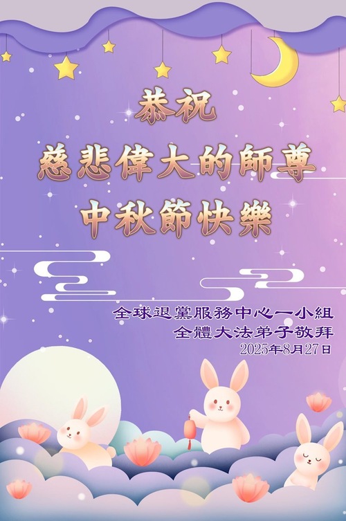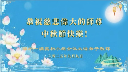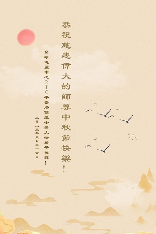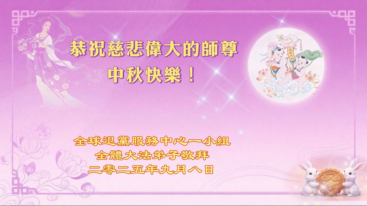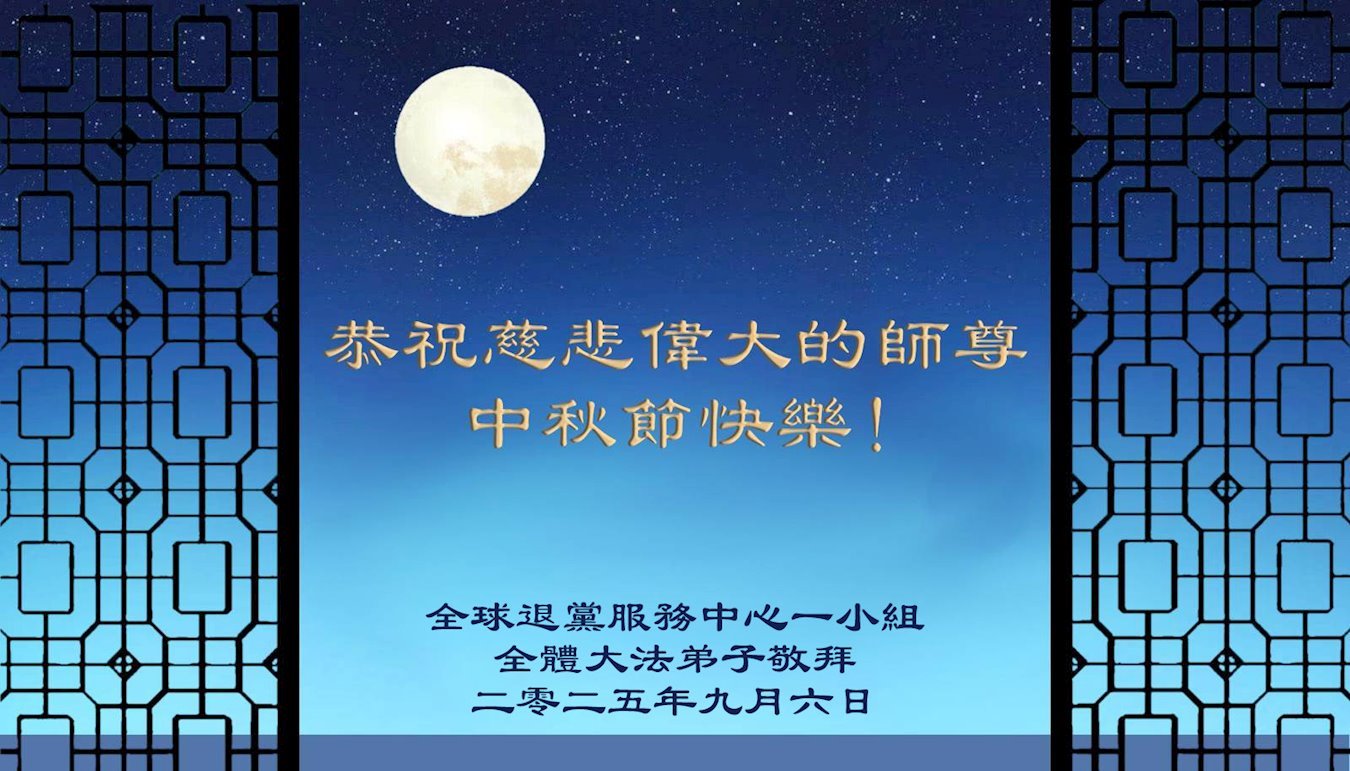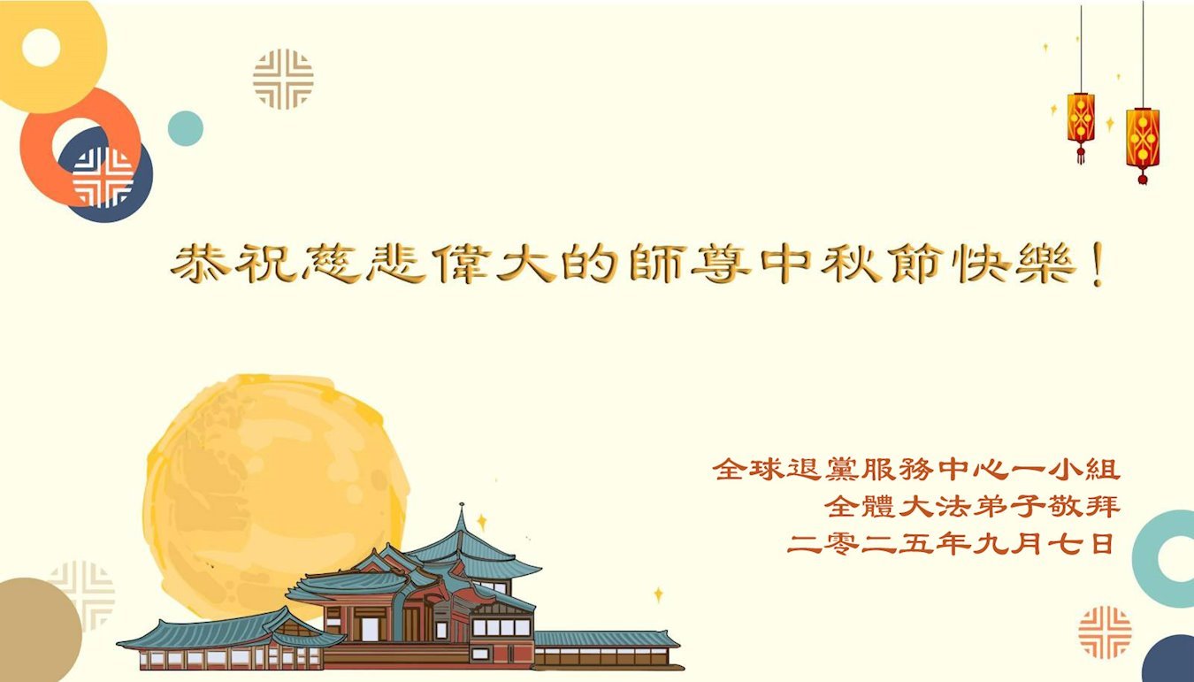 (Minghui.org) К празднику Середины осени 2025 года практикующие Фалунь Дафа присылают свои поздравления и наилучшие пожелания Учителю Ли Хунчжи, основателю Фалунь Дафа.