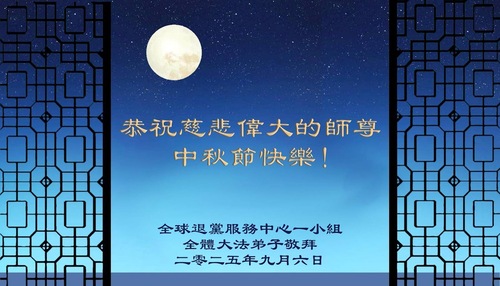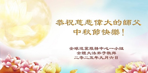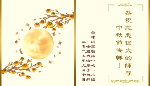 Практикующие из команды японского веб-сайта Minghui, «Окно в Minghui.org»; работающие на телеканале Minghui; участники Европейской школы Minghui; Европейского духового оркестра Тяньго и работники издательства «Fa Yuan Books» поздравляют уважаемого Учителя с праздником Середины осени