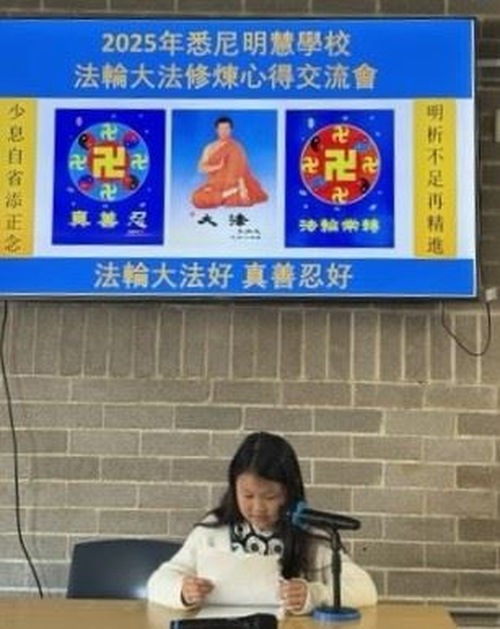 (Minghui.org) 28 сентября 2025 года в школе Minghui в Сиднее прошла Конференция по обмену опытом совершенствования юных практикующих Фалунь Дафа. Двенадцать участников конференции рассказали о том, как они, несмотря на плотный график занятий в школе и насыщенную повседневную жизнь, упорно совершенствуются, стремятся избавиться от привязанностей, помогают Учителю в подтверждении Фа, спасают живых существ и становятся достойными молодыми практикующими.