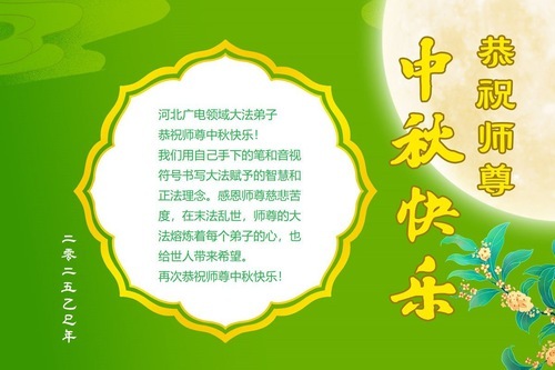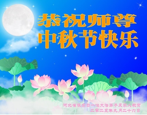 Практикующие Фалунь Дафа из провинции Хэбэй желают уважаемому Учителю Ли Хунчжи счастливого праздника Середины осени (130 поздравлений)